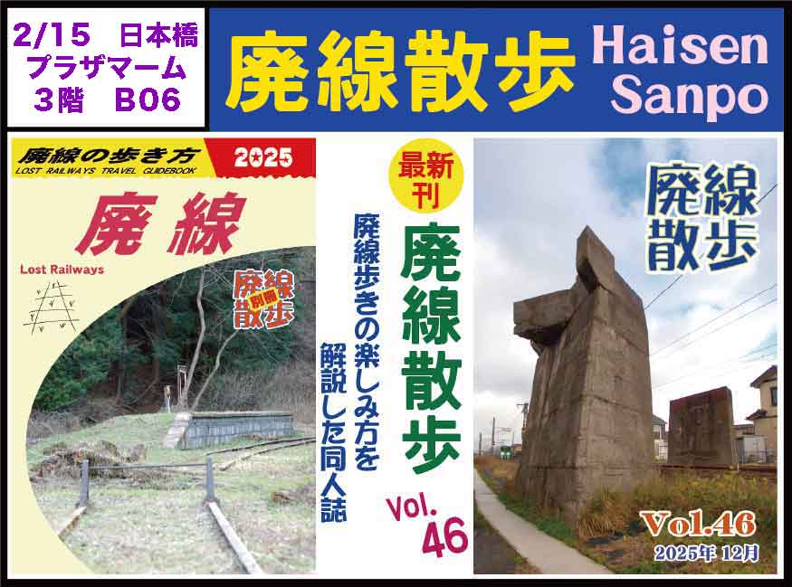 ・当ホームページで提供されている各種情報は、最新かつ正確な情報を掲載するように努めておりますが、その完全性・正確性・有用性について保証するものではありません。各自の責任と判断のもとにご利用いただき、万一、これら情報を利用されたことによって生じた損害については、責任を負いません。特に廃線探索の際は十分注意してください。危険が伴うことがありますので無理な行動はおやめください。