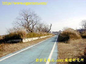 廃線は常磐線から離れると築堤を残したままの状態で進んでいます。場所によっては駐車場として利用されています。 県道にあった運河を渡る橋は撤去されていました。 運河の先は、サイクリングロードとして整備されています。ここが筑波自転車道の起点です。 |