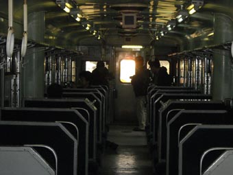 公開中のキハ104の車内 キハ102のヘッドライトがまぶしい! |